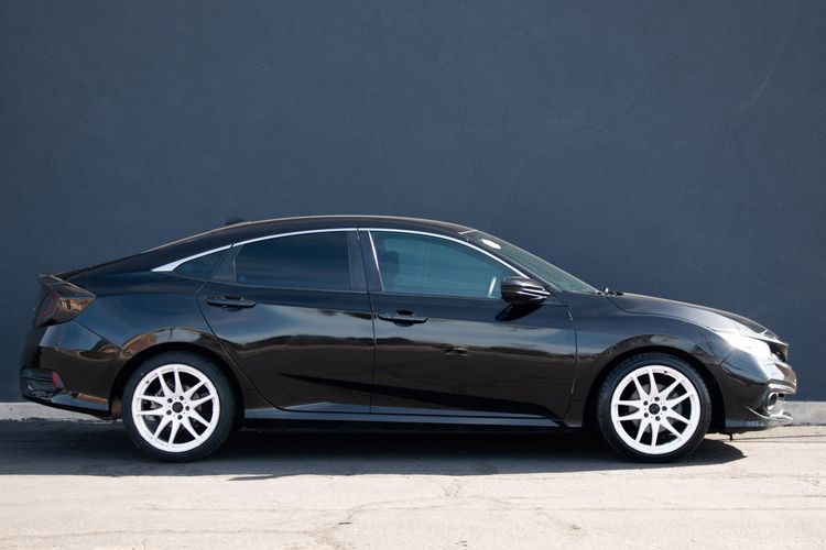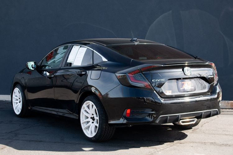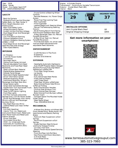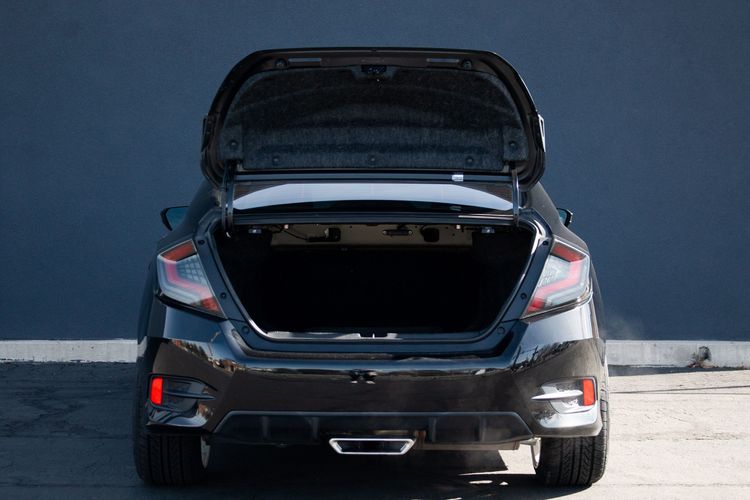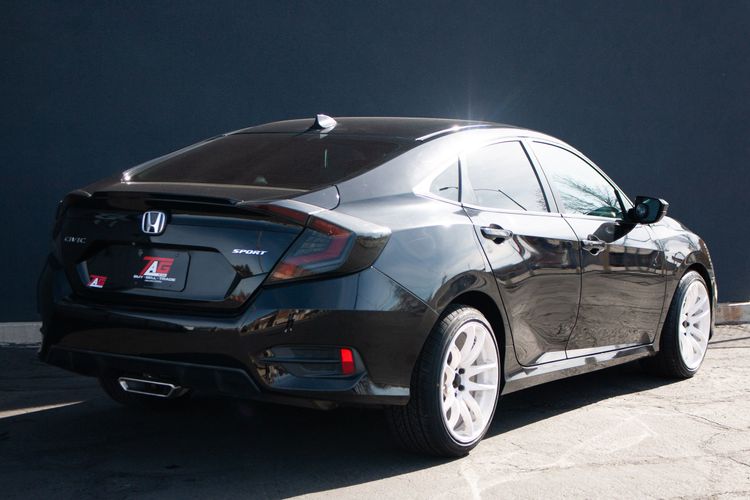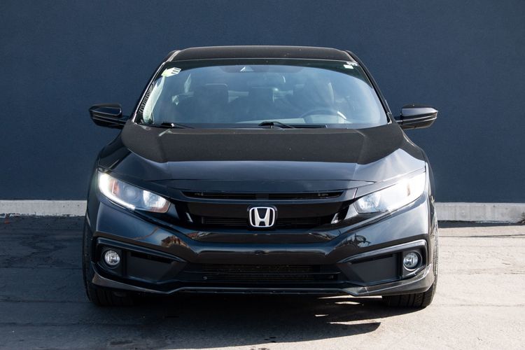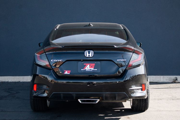 The 2019 Honda Civic Sedan Sport CVT is a sleek, dynamic vehicle that embodies modern sophistication and performance. Its Crystal Black Pearl exterior exudes a bold and elegant presence on the road, complemented by distinctive sport styling cues that enhance the car’s overall aesthetic appeal. The aggressive front grille and sharp, angular lines give this Civic a commanding stance, ensuring that it stands out whether you're cruising through city streets or parked in your driveway.