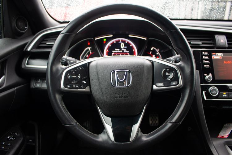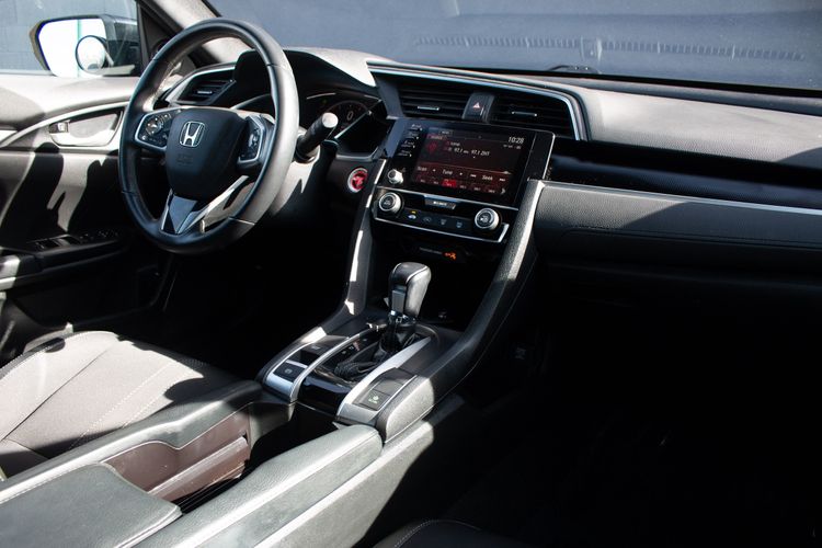 Inside, the Civic offers a refined black interior that perfectly matches its sporty exterior. The cabin is thoughtfully designed with premium materials and ergonomic seating, providing both comfort and style for drivers and passengers alike. Advanced technological features are seamlessly integrated into the dashboard, giving you easy access to navigation, entertainment, and connectivity while on the go. The spacious interior is accentuated by ample legroom and cleverly designed storage solutions, making every journey convenient and pleasurable.