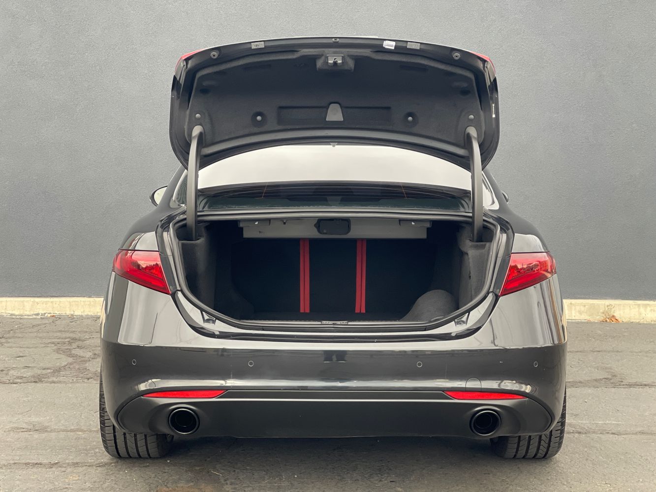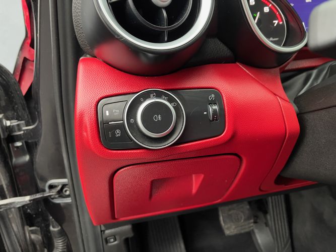 The 2020 Alfa Romeo Giulia Ti RWD is an embodiment of Italian elegance and performance wrapped in a striking Vulcano Black Metallic finish. Its sleek silhouette is accentuated by the Nero Edizione package, which adds a touch of sophistication with darkened exterior elements for an even more commanding presence on the road. The exterior isn’t just about looks; the Ti Performance Package ensures dynamic driving, enhancing the car's handling capabilities and responsiveness.