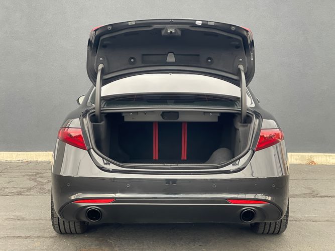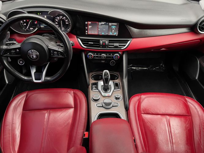 Under the hood, the 2.0L 4-cylinder engine delivers a robust performance, ensuring an exhilarating driving experience complemented by the vehicle's rear-wheel-drive setup. Technological features like the 8.8-inch AM/FM/HD radio with navigation keep you connected and informed, while the active blind spot package contributes to a safer drive by providing additional awareness on the road. The Alfa Romeo Giulia Ti RWD isn't merely a car; it's a statement of style, luxury, and engineering prowess that transports its occupants in uncompromising comfort and agility.