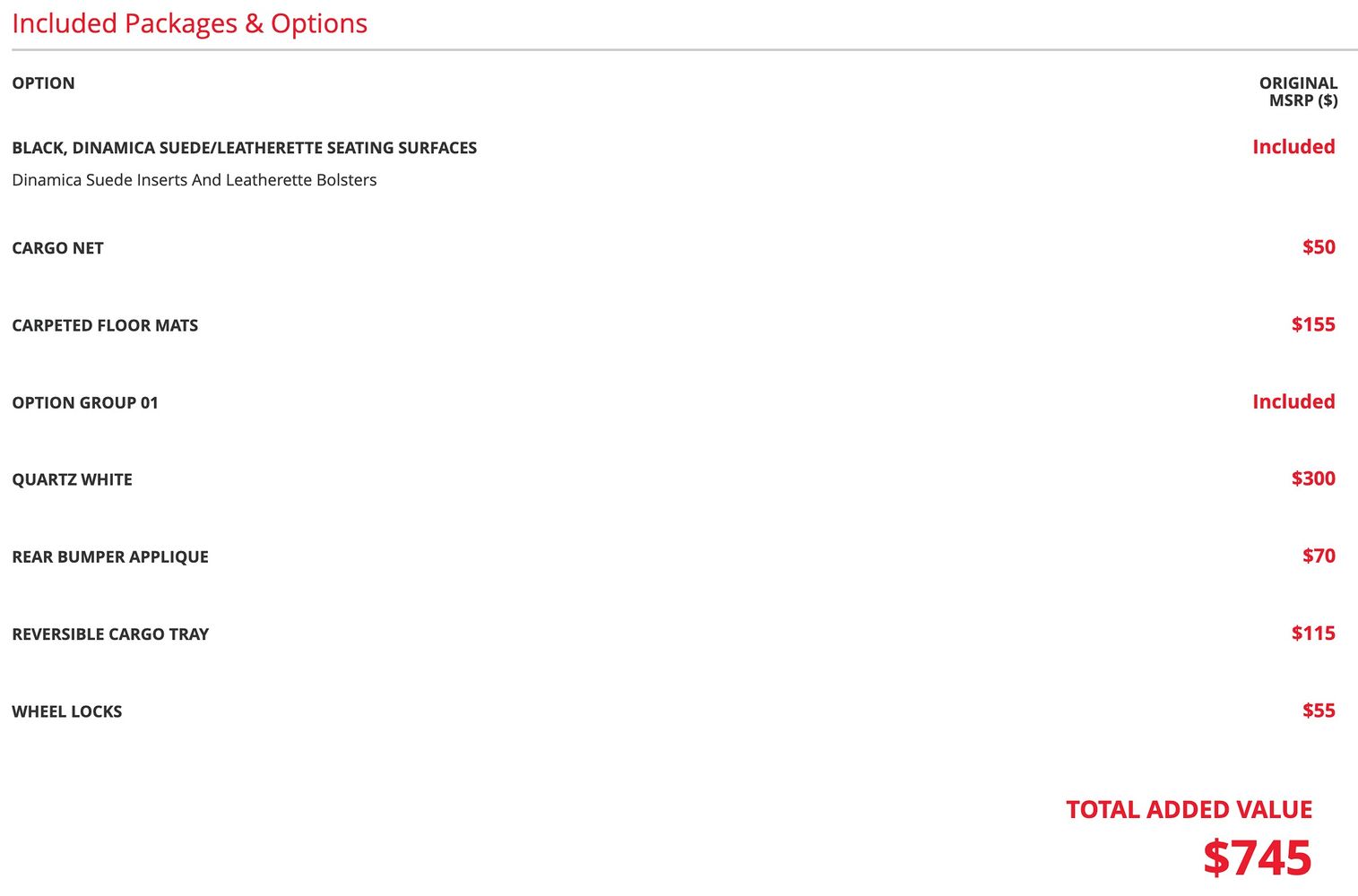 Front seatback upholstery: Plastic front seatback upholstery