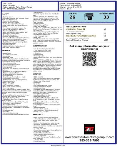 The Veloster’s exterior is as practical as it is stylish, featuring an aerodynamic design that enhances fuel efficiency without sacrificing looks. Its sporty silhouette and aggressive stance reveal its performance capabilities, making a statement on the road. With the Turbo R-Spec Manual styling, this vehicle promises a dynamic driving experience, offering both practicality and excitement. Every element of the 2020 Hyundai Veloster Turbo R-Spec reflects a commitment to blending innovation with everyday usability.