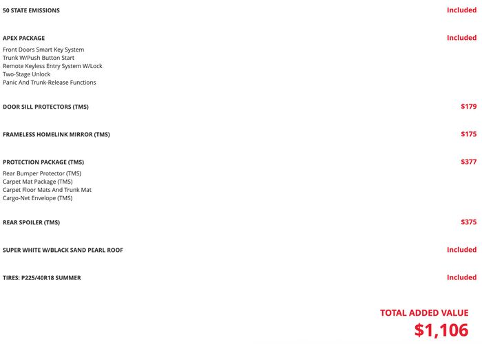 The addition of the protection package (tms) ensures that your vehicle remains in pristine condition, while the door sill protectors (tms) add a layer of defense against everyday wear and tear. Technological enhancements in this model include a frameless Homelink mirror (tms), which seamlessly combines modern convenience with intelligent design, allowing for easy integration with home systems.