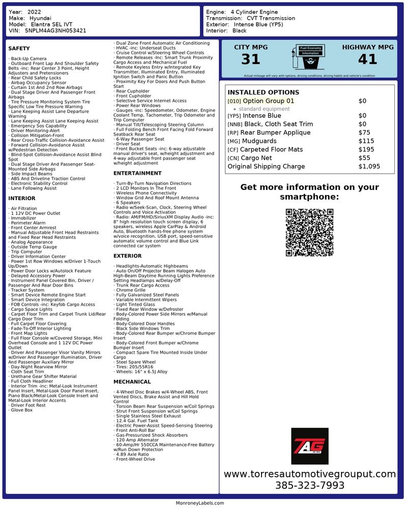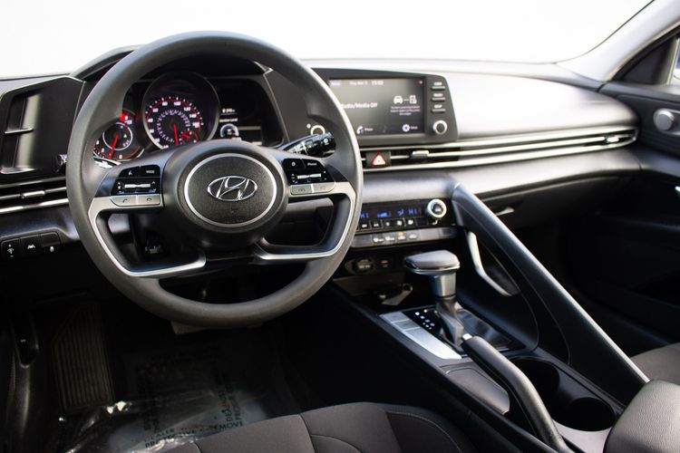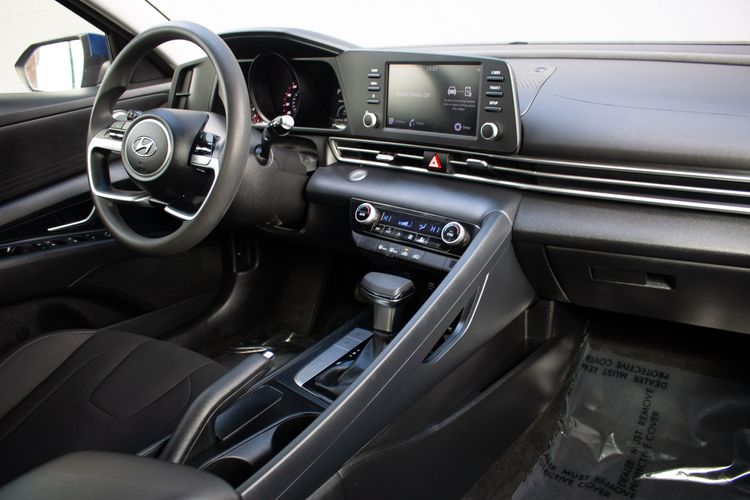 The 2022 Hyundai Elantra SEL IVT stands out with its striking Intense Blue exterior, drawing attention with its dynamic and modern look. This vehicle is designed for those who appreciate style paired with performance, featuring a robust 2.0L 4-cylinder engine that delivers a seamless driving experience. Inside, the sophisticated black interior exudes elegance and comfort, making every drive both enjoyable and relaxing. The SEL trim level is further enhanced with the convenience + premium package, offering a range of advanced features that elevate the driving experience.