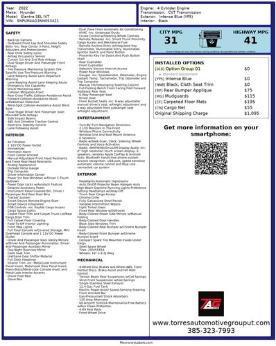 With safety and technology at the forefront, the Elantra SEL IVT is equipped with advanced systems to assist and protect its occupants. The premium package offers state-of-the-art technology for entertainment and connectivity, keeping the driver in command of their journey. This Hyundai model not only focuses on technological advancements but also emphasizes fuel efficiency, making it an economical choice for daily commuting. Overall, the 2022 Hyundai Elantra SEL IVT embodies a blend of elegance and functionality, ensuring drivers experience the best of both worlds on every drive.