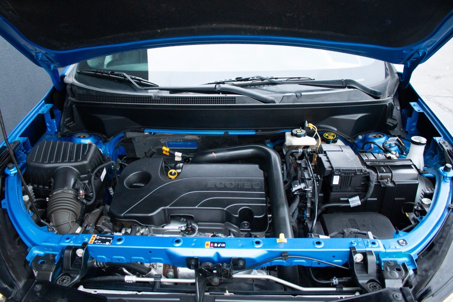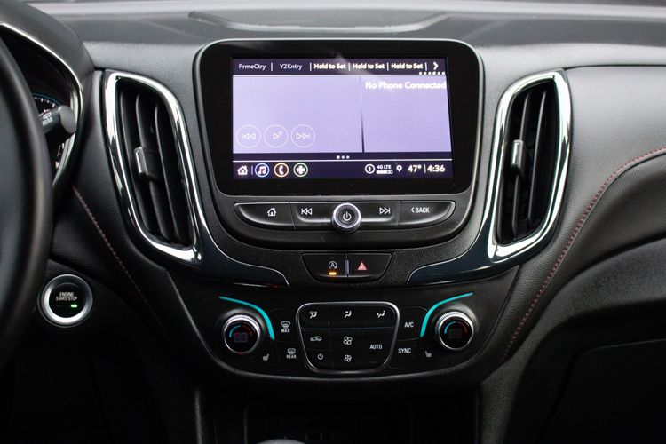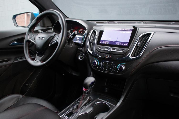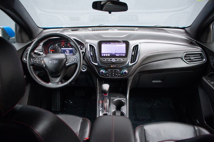 Inside, the Equinox elevates the driving experience with its Jet Black interior accented by vibrant red highlights, embodying a sporty yet sophisticated atmosphere. The RS leather package ensures premium comfort with high-quality seating and meticulous stitching. Advanced technology comes standard, courtesy of the safety and infotainment package, which includes features like a high-resolution touchscreen, smartphone integration, and enhanced safety options to keep all passengers secure. The intuitive layout places essential controls at your fingertips, ensuring every ride is connected and convenient.